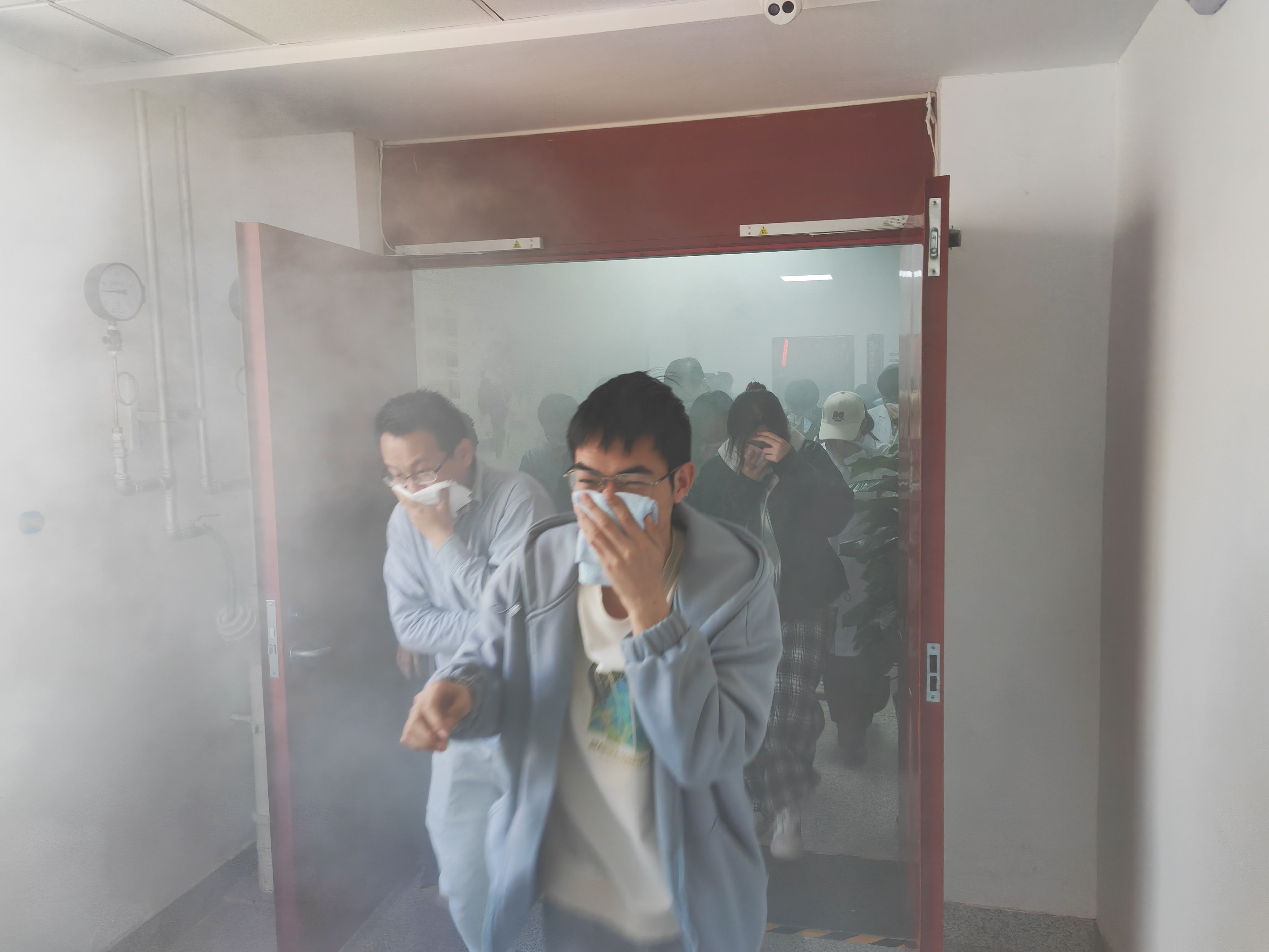 党委保卫部的指导下,工作人员点燃烟冰模拟突发火灾事故。随着消防警报声响起,学院按照既定火灾疏散逃生演练预案,迅速组织师生沿安全逃生通道有序撤离。逃生演练结束后,党委保卫部杜春兴科长带领师生回顾了逃生演练过程中存在的问题,强调了火灾逃生过程中的注意事项,如毛巾需打湿后捂住口鼻、陌生环境提前观察逃生疏散路线等,并对学校办公学习场所设置的常用消防设施进行了讲解和演示。
