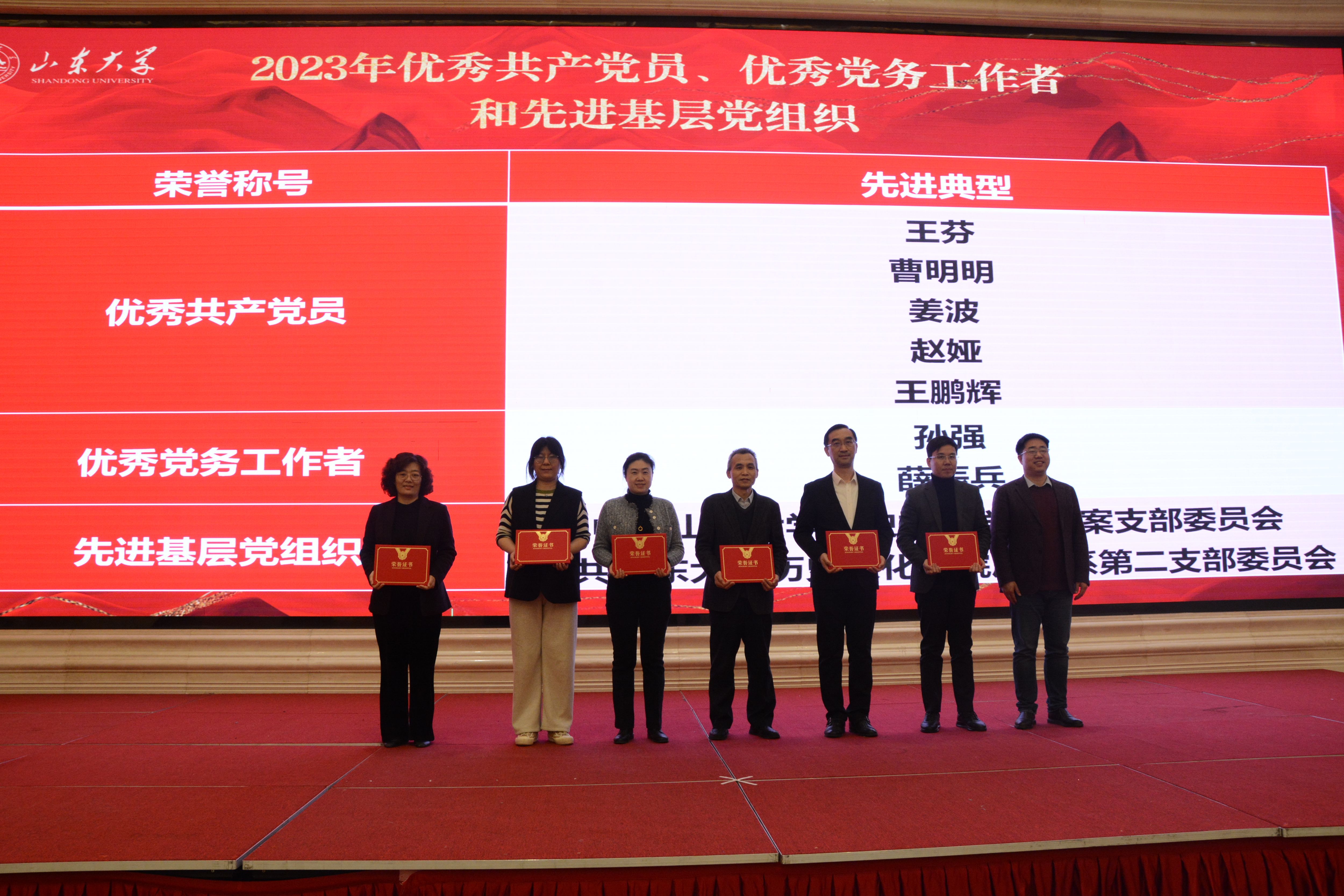 大会对2021-2022年度优秀教学成果获得者、优秀科研成果获得者和2023年优秀共产党员、优秀党务工作者、先进基层党组织进行了表彰。