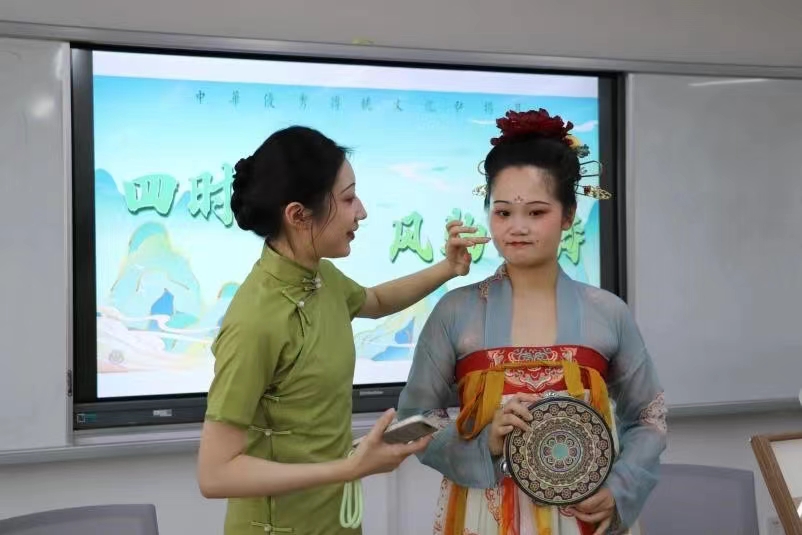 熠熠华裳,古韵今风。历史学院2021级硕士研究生、《中国诗词大会》选手姜艺为同学们带来汉服演变溯源讲座,并开展妆束体验活动。姜艺结合汉服服饰和妆容配饰,讲解了从汉代到明代的汉服演变过程,用诗词笔墨和汉服妆束感悟古典文化的婉约与深沉,同学们身着各朝各代的传统服饰,沉浸式体验汉服的独特魅力。活动在“传统”与“现代”的碰撞交融中赴一场“穿越千年”的古韵之约,让参与者领略千年国风之美。