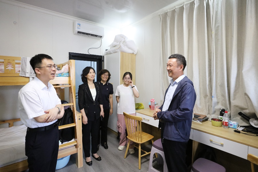 在垓下遗址青少年爱国主义教育基地,李向阳一行细致考察了考古队师生的生活环境及居住条件,关切询问了考古队师生在发掘实习中的学习和生活情况。