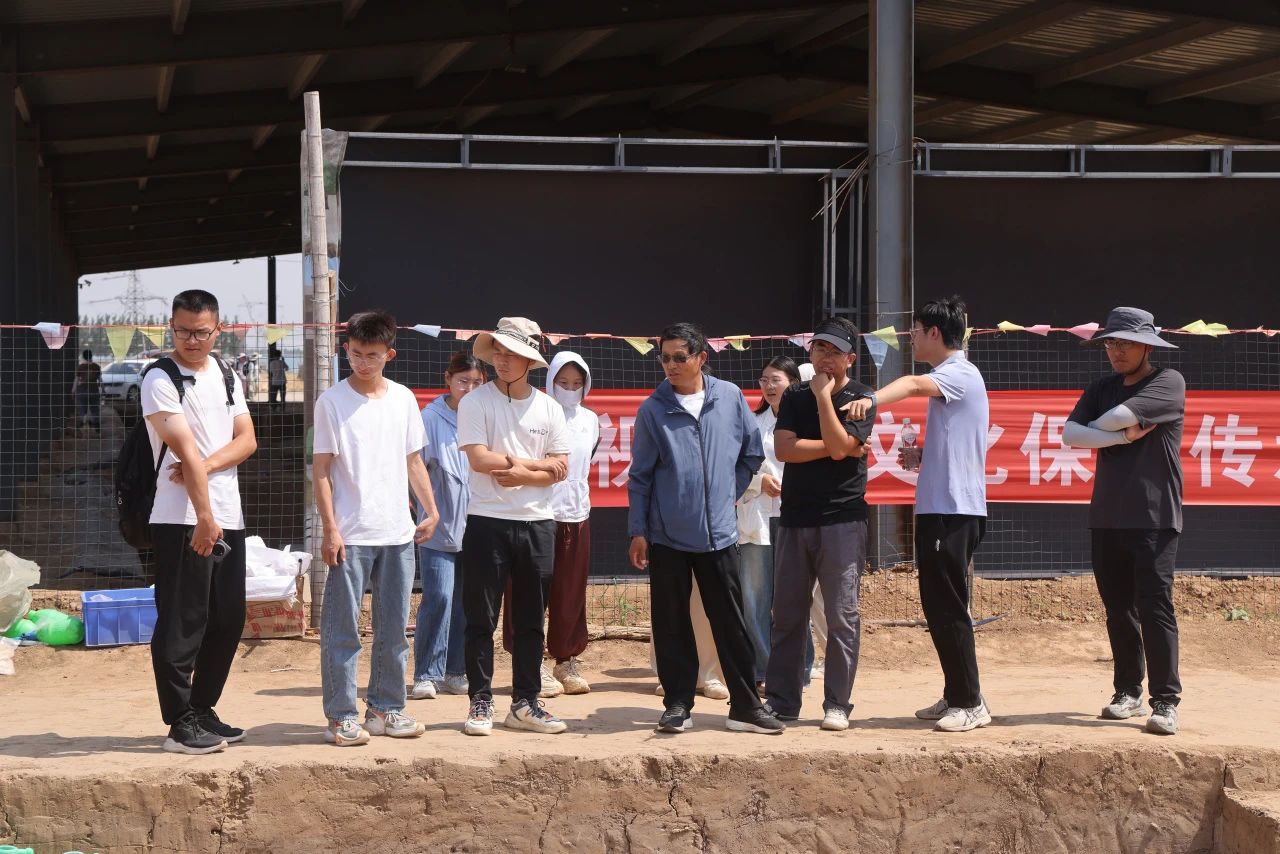 大汶口遗址考古队队员以及曲阜师范大学历史文化学院学生在焦家遗址进行参观时,现场负责人武昊介绍了今年的发掘目标、发掘进度及新近主要收获,并同大汶口遗址考古队的师生们互相交流发掘经验,比较两遗址在堆积情况、遗迹现象和遗物特征等方面的异同。他还结合历年来遗址的发掘概况,对大汶口文化在中国文明起源研究中的角色地位、地理位置及性质、典型陶器制作工艺等多个方面进行了详细介绍,给同学们留下直观而深刻的印象。