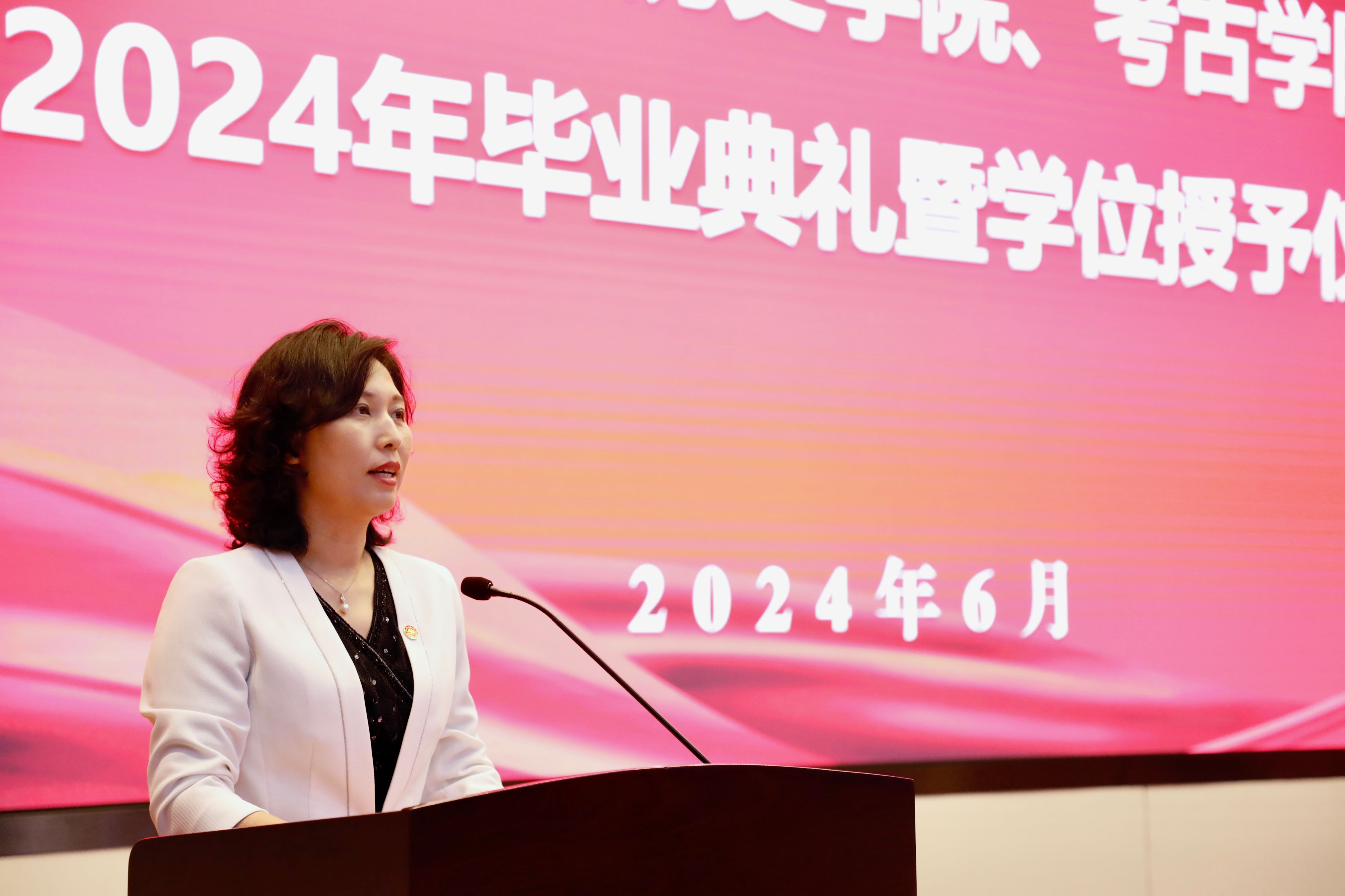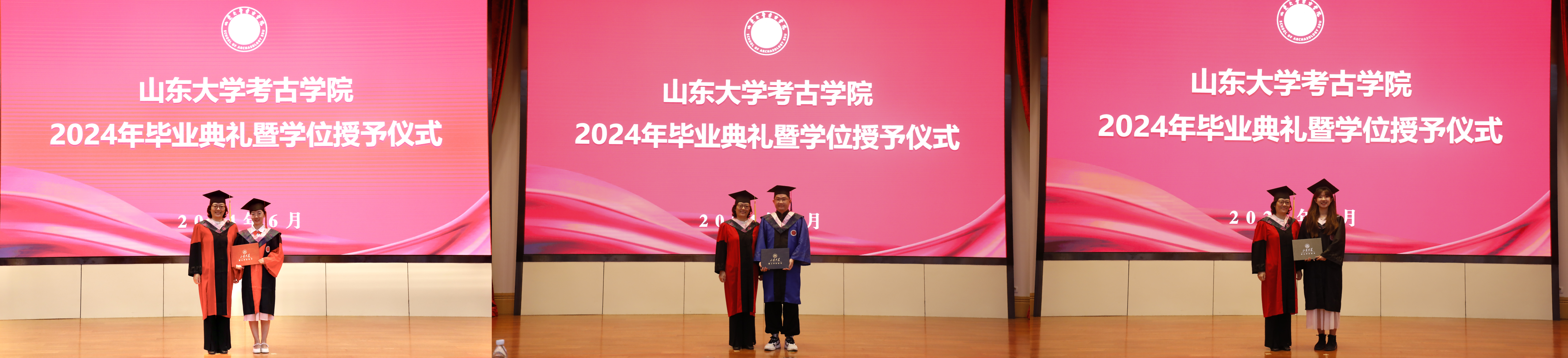 举行了2024届毕业生学位授予仪式。毕业生身着学位服依次登台,王芬、代国玺逐一与本硕博毕业生拨正流苏、颁发学位证书,并合影留念。