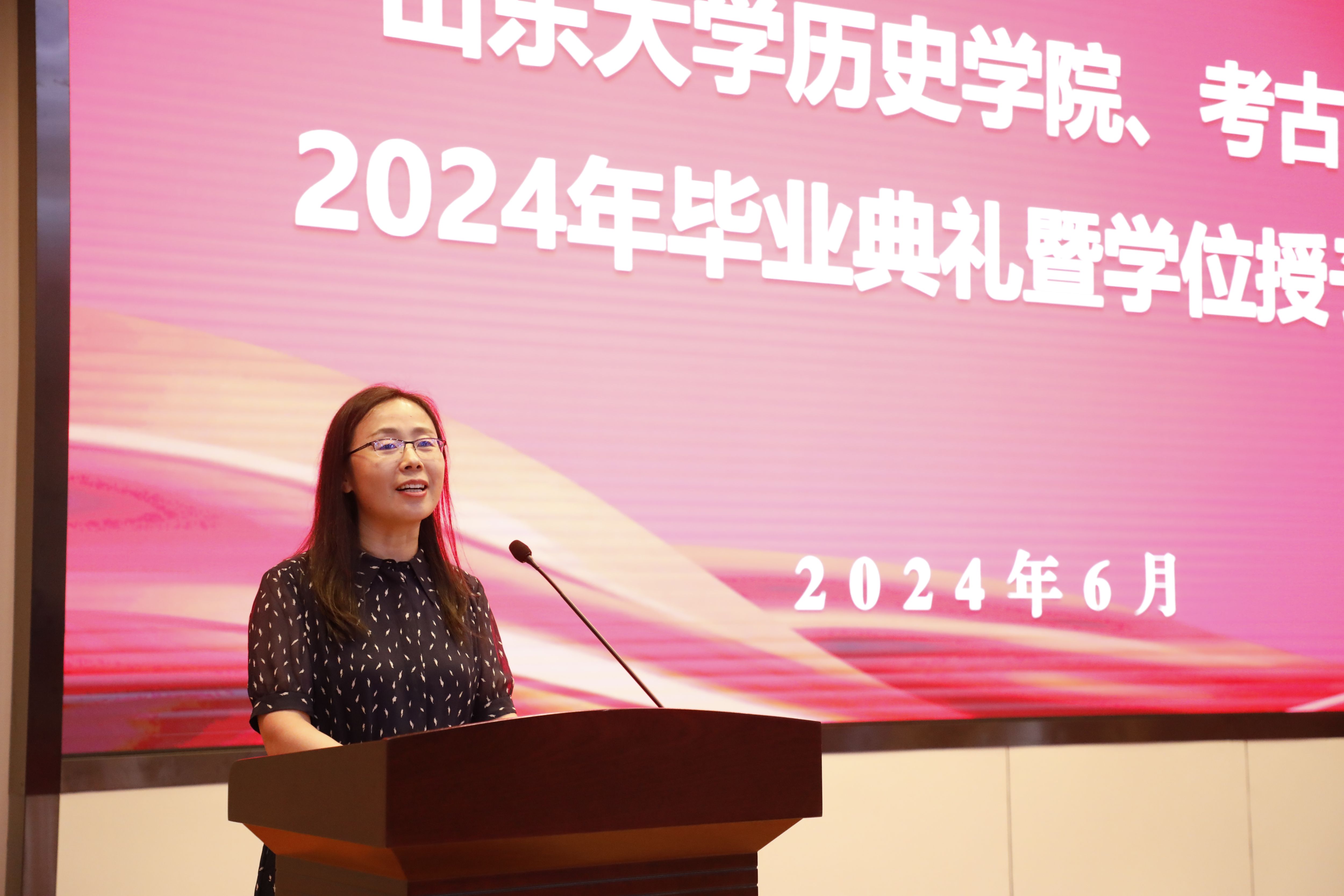 2000级考古学专业校友,第十七届中国青年科技奖、第十七届中国青年女科学家奖、长江学者奖励计划青年学者、兰州大学资源环境学院张东菊教授在发言中回顾了自己在山大的求学经历,对毕业生们表达了诚挚感谢和美好祝福,希望毕业生们带着山大给予的底气和勇气,在未来道路上心无旁骛、专心致志,遇到困难不要迟疑、不要退缩,专心走路、踏实走路,以自己的方式为山大增光添彩,成就理想和事业。