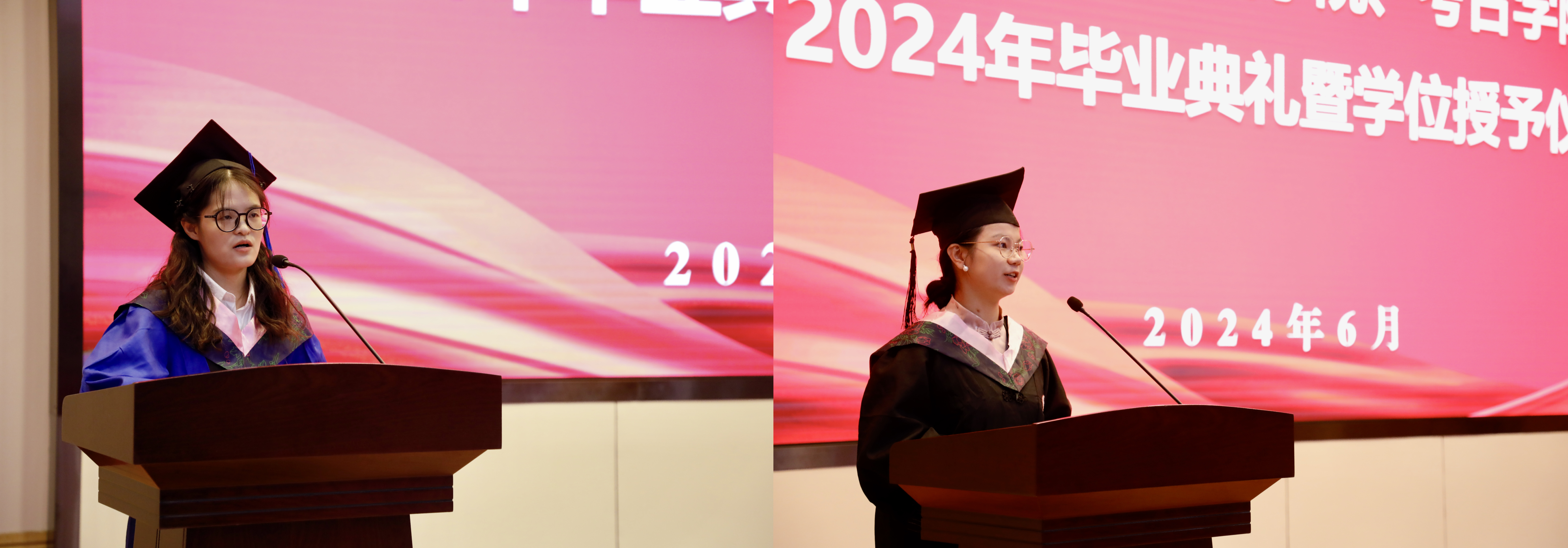 各学系和机关教职员工代表,2024届毕业生及部分学生家长参加了毕业典礼和学位授予仪式。