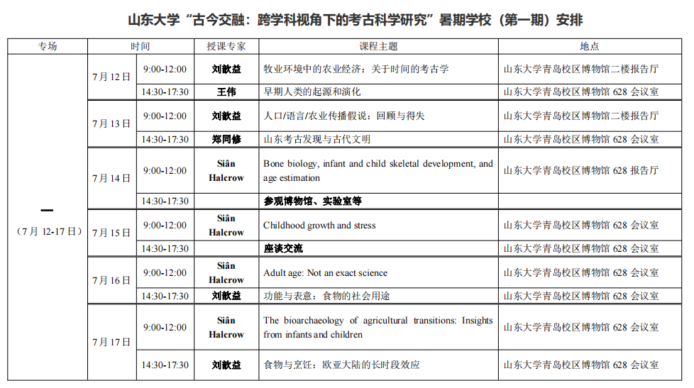 本次暑期学校共分三期,第一期时间为7月12日至7月17日,课程主题包括早期农业的发展和食物传播、生物考古学等。后续课程将持续至7月31日。
