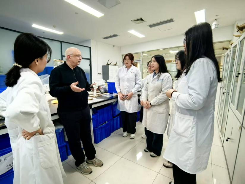 访问期间,Greenfield教授向动物考古实验室的师生进行了实验室教学。教授对实验室不同遗址的动物骨骼材料的痕迹进行了细致的观察,重点为同学们讲解了如何利用超景深显微镜观察各种屠宰痕迹,以及不同工具的类型和原材料所造成的屠宰痕迹的微观形态差异。期间,教授还向同学们分享了自己的动物骨骼基础数据和痕迹观察的数据库,并指导同学们进行了数据记录实践。此外,Greenfield教授还传授了配制化学溶液用以保存现生标本的方法,学生们受益匪浅。