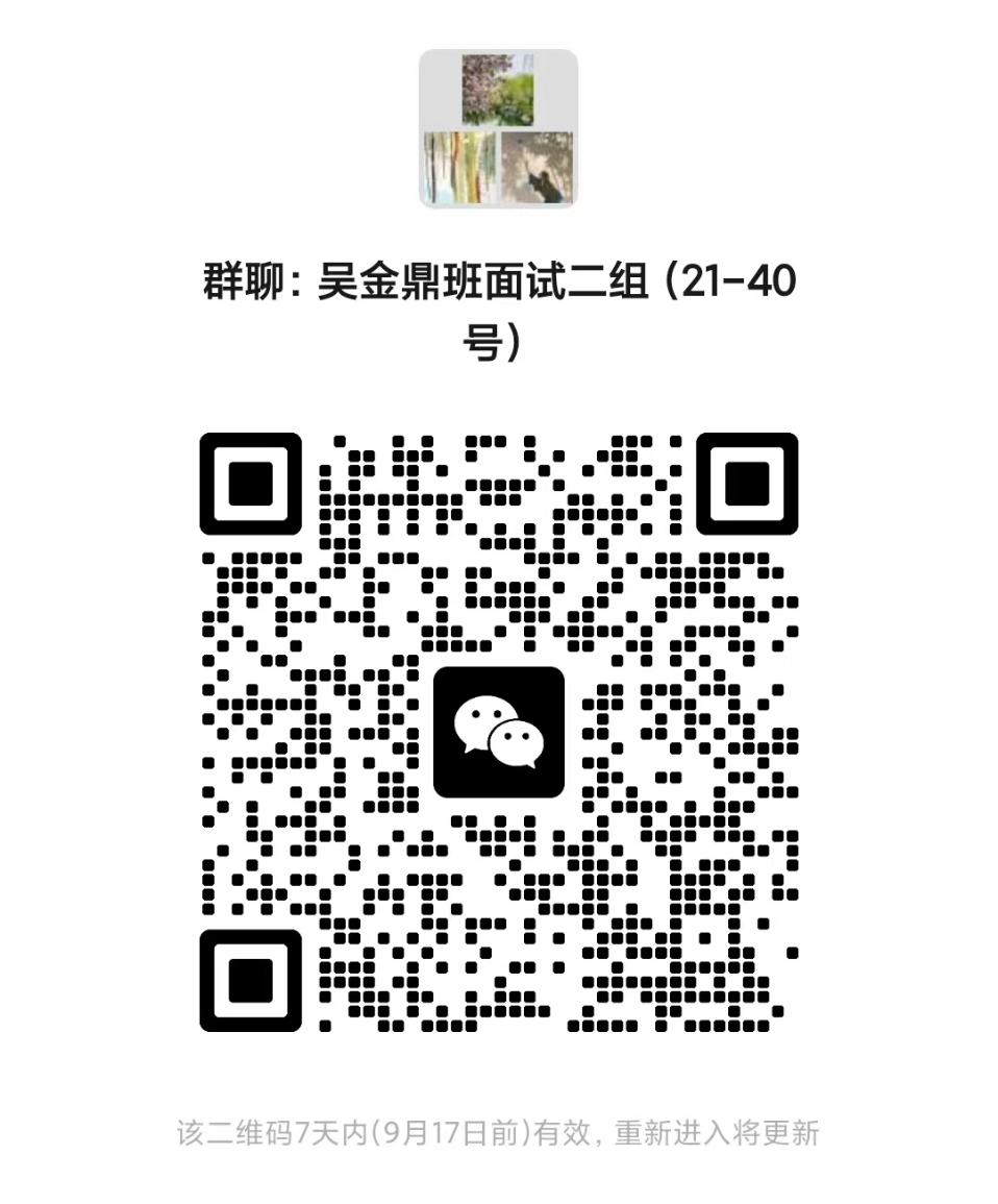 请入选同学按表格中分组情况扫描二维码加入微信群,并及时更改昵称为实名,以方便接收后续面试安排的各项通知。