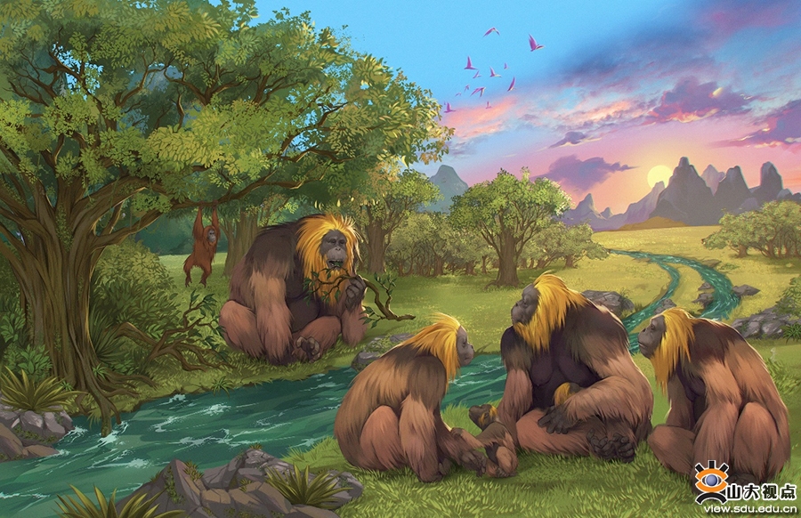 图2 步氏巨猿生活场景复原图(Garcia / Joannes-Boyau 绘制)