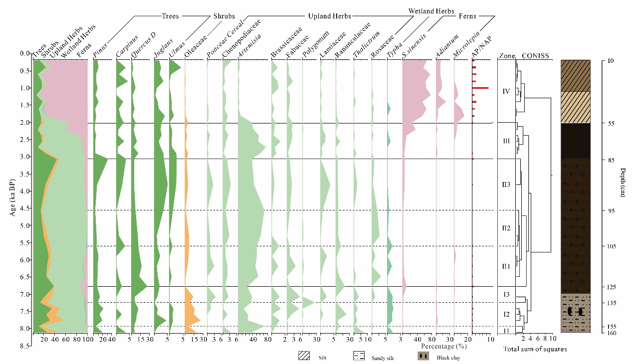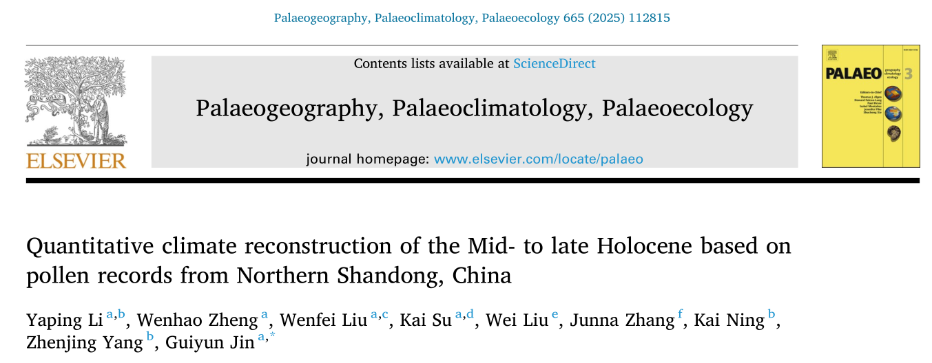 文化遗产研究院环境与生业考古团队在国际学术期刊Palaeogeography, Palaeoclimatology, Palaeoecology上发表了题为“Quantitative climate reconstruction of the Mid- to late Holocene based on pollen records from Northern Shandong, China”(基于花粉记录的鲁北地区中晚全新世气候定量重建)的研究论文,深化了城子崖遗址所在的巨野河流域全新世环境演化研究。论文第一作者为偷情视频