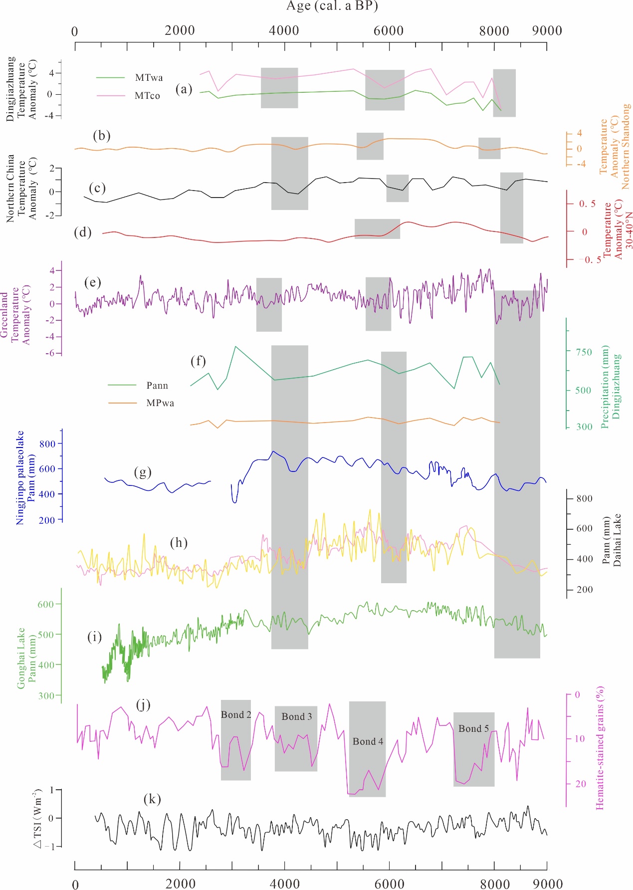 图5 全新世不同区域气候记录比较