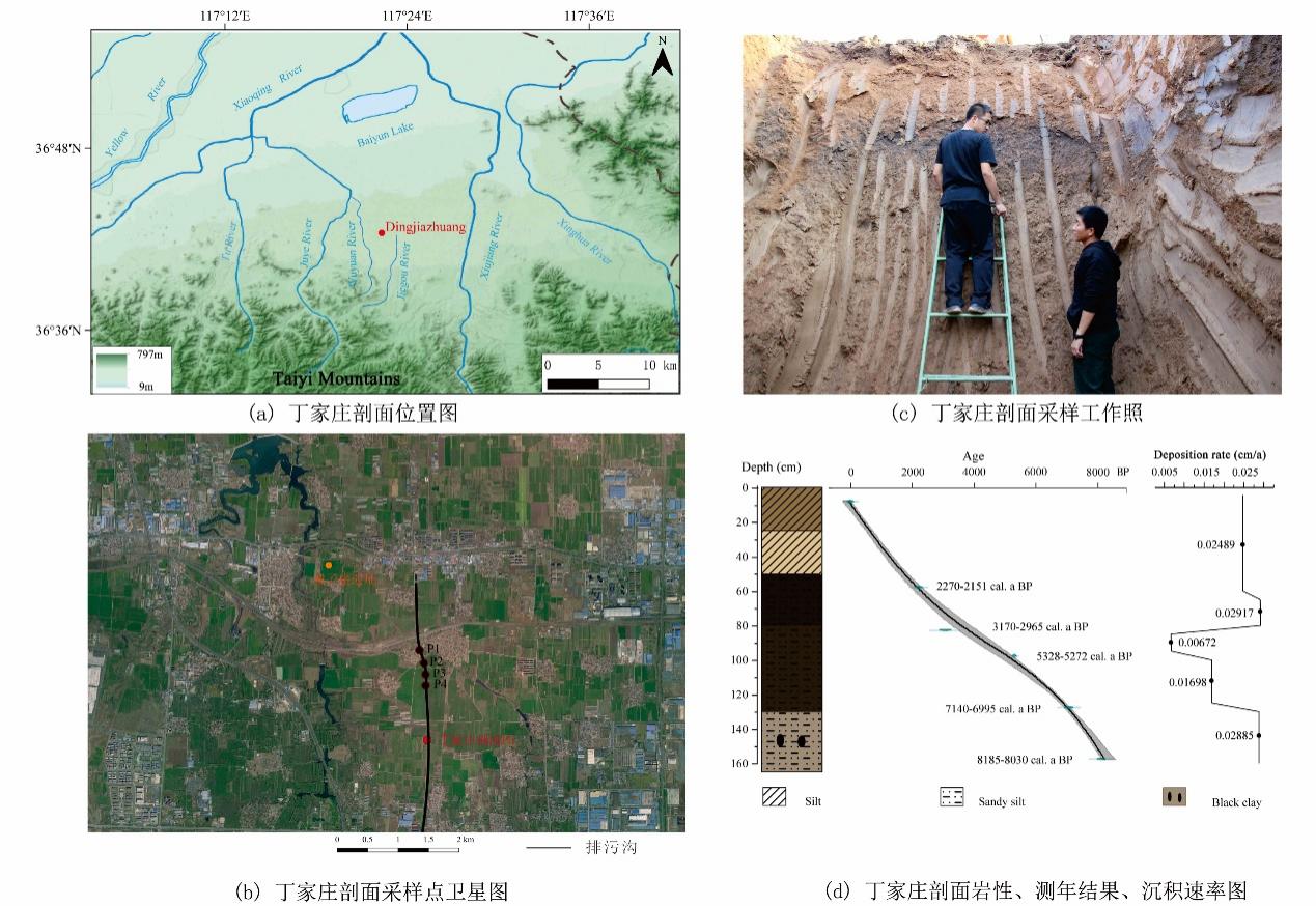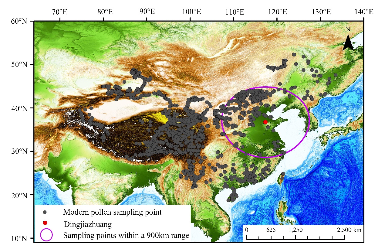 海岱地区是中华文明起源和形成的重要区域之一。其中,鲁北地区的考古学文化自新石器时代至青铜时代一直延续不断,涵盖了多个重要的文化阶段,尤其是孕育了以大汶口文化、龙山文化、周代的齐国为代表的海岱文明,其文化兴衰的环境背景一直受到学术界的高度关注。然而,以往的古气候研究不仅缺乏高分辨率的定量气候重建,且古气候数据空间分布无法满足环境与文明关系的深入探讨,比如,在焦家、城子崖等重要遗址附近一直缺少古气候研究成果。本研究旨在前人工作基础上,以城子崖遗址东南方向约3.2公里的丁家庄自然剖面孢粉分析为前提,综合分析现代表土花粉数据、气候数据,重建鲁北地区全新世气候,并解析气候驱动机制。