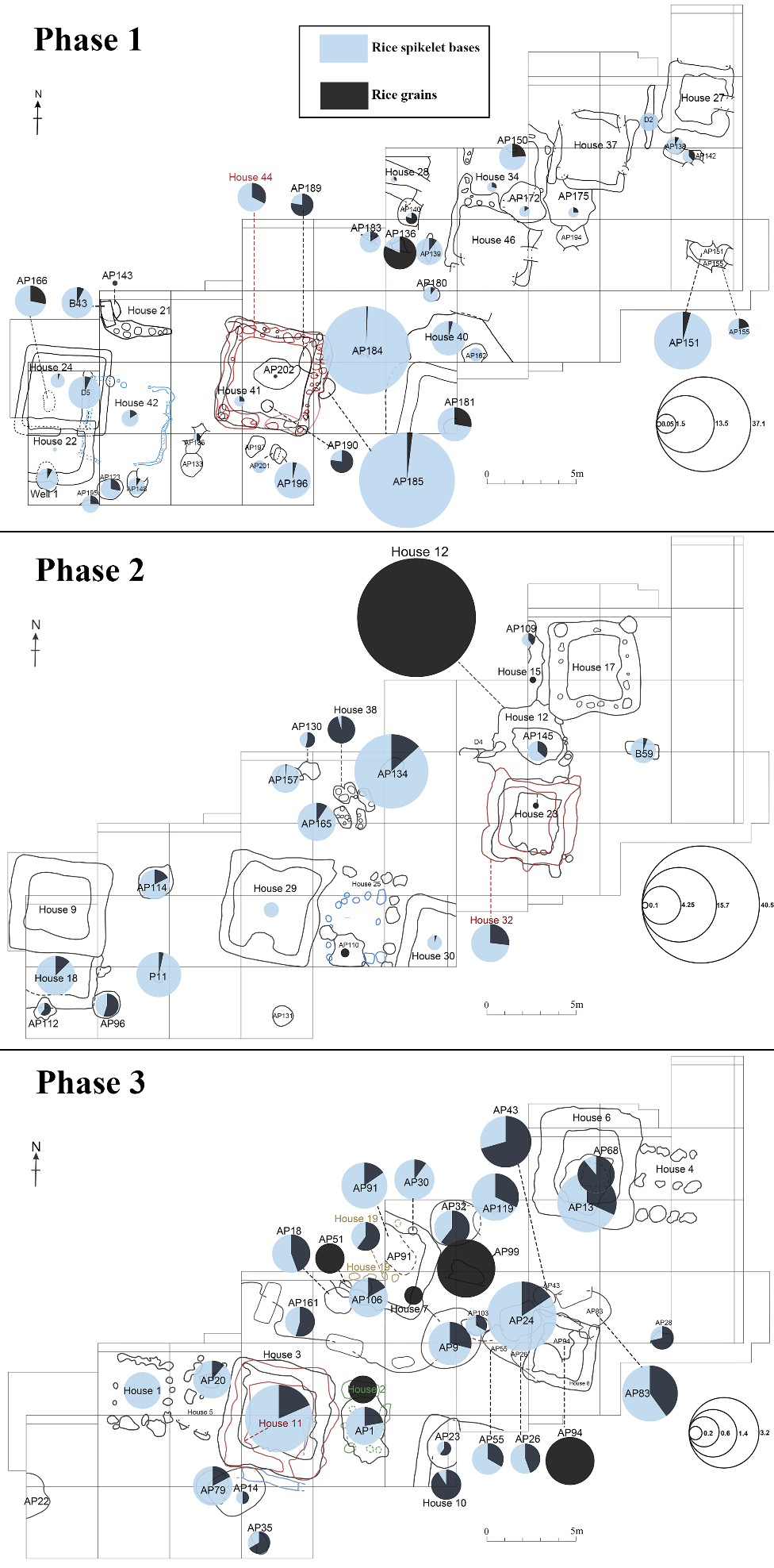 图三 苏家村遗址不同阶段稻米遗存分布图