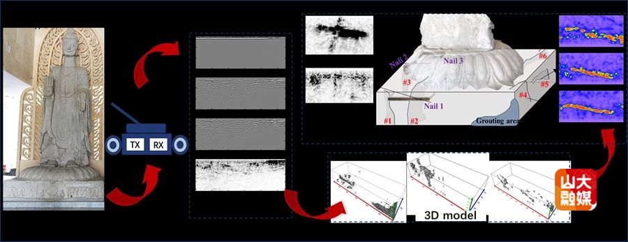 近日,数智考古与中华文明特色分中心、文化遗产研究院李力副教授团队,数智考古与中华文明特色分中心、土建与水利学院工程软件系孙怀凤教授团队与山东省文物保护修复与鉴定中心、青岛市博物馆开展合作,在国际权威期刊Journal of Cultural Heritage在线发表研究论文“Decoding the stone Buddha: Three-dimensional ground penetrating radar attribute insights into cracks and restoration history of Sumeru throne”(JCR Q1、中科院艺术学一区)。土建与水利学院博士研究生葛峻恺为第一作者,孙怀凤教授、李力副教授为本文的共同通讯作者,偷情视频