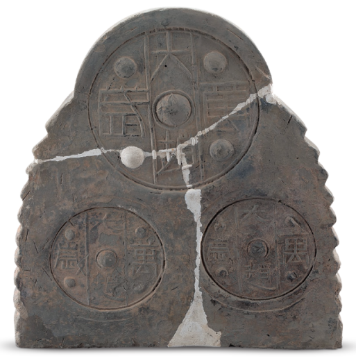 以建筑材料为例,当沟是用于建筑屋脊上两个筒瓦瓦垅之间与正脊、垂脊或戗脊之间的部位。[1]邺城地区出土的独特的半圆形人面纹当沟,同时在拓跋鲜卑经营的大同地区和慕容鲜卑聚集的辽宁朝阳地区均有发现,而最近的发现地洛阳为确认该类瓦件的使用者和区域间的文化交流提供了新的线索;由三块瓦当形图案合成一块的“大赵万岁”建筑构件与东魏北齐兽面瓦及后世朝鲜半岛和日本各地常见的“鬼瓦”之间也存在着直接或间接的传承关系。