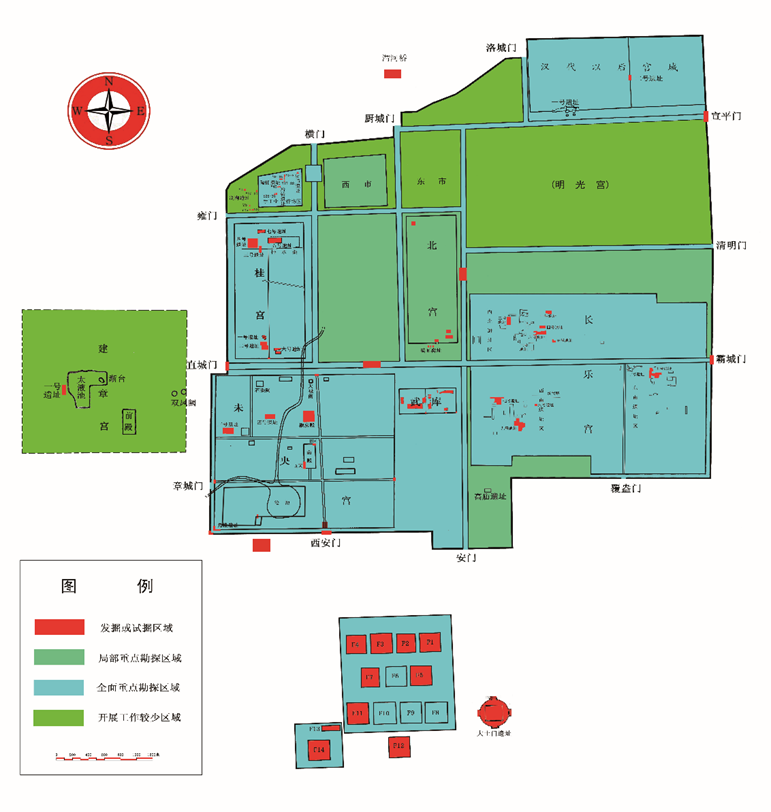 此外,西汉以后的十六国、北朝时期,一些北方民族政权也在此建都,其遗存主要集中在汉长安城东北部,尤其是东北部宫城区域。