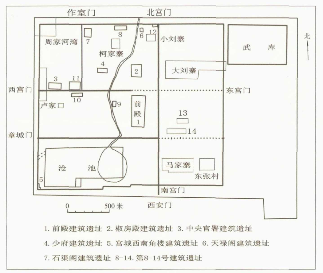 汉长安城未央宫平面图(据1996年《汉长安城未央宫》修改)