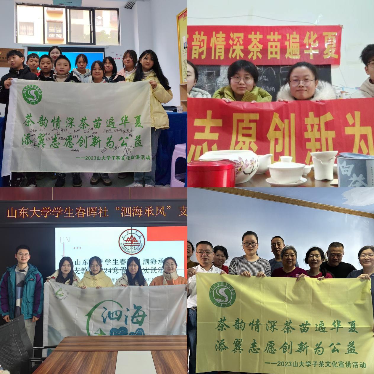 泗海承风茶文化宣讲队赴山东泗水开展茶文化社会实践调研》等实践报告23篇,社会调研101次,现场访谈42次。宣讲志愿者们纷纷表示,在宣讲过程中,听众们认真听讲、积极互动,洋溢的热情和求知的眼神透露出对茶文化体验充满了好奇与兴趣,表达了对于中国传统茶文化的喜爱和向往。宣讲活动之外的社会调研与访谈使象牙塔里的年轻人有了难得深入中国基层社会与民间治理层面的机会,乡音乡情里的发展与困惑、难题与展望,在青年人的心中也种下了“到祖国最需要的地方去”的热切期盼。
