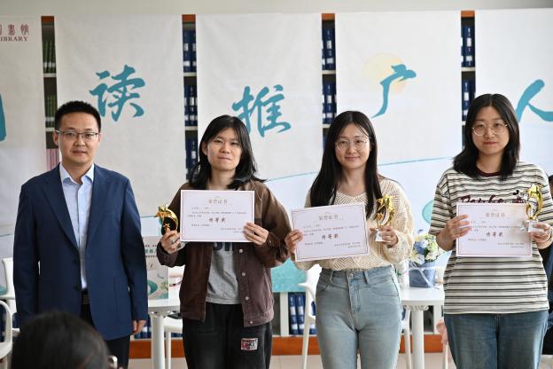 在颁奖环节,嘉宾们为“优秀阅读推广人”活动的获奖同学颁发了荣誉证书和奖品。本次活动评选出特等奖4名、一等奖7名、二等奖10名和三等奖13名,其中2023级考古学专业本科生王英琪、2023级图书情报专业硕士研究生王佩沛、2024级中国史专业硕士研究生王玉双和2024级中国史专业硕士研究生王亦婷获得特等奖暨“优秀阅读推广人”称号。