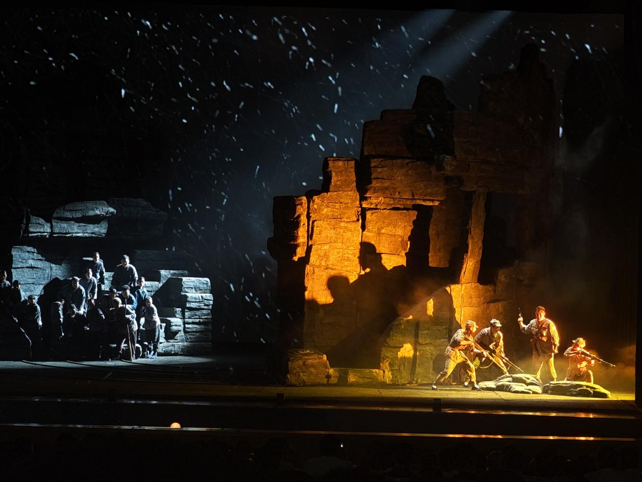 《沂蒙山》内核丰富,既有“唱着喜歌上战场,敢拉阎王当伴郎”的民族热血,也有“又学习来又战斗,抗日救国打先锋”的革新思想。既关注抗日救国的宏大叙事,也给予人物感情人格空间,令现场观众纷纷动容。
