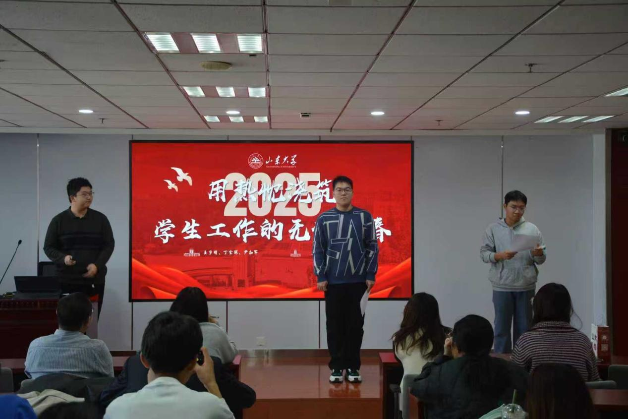 共有12组同学参赛,结合短视频、PPT演示等多种媒介,分别围绕“思想铸魂·理论强基”、“知行合一·挺膺担当”、“先锋示范·榜样引领”、“数智赋能·拥抱AI”四大主题展开演讲。参赛选手或结合百廿校史,重走山大来时路,展望光辉前景;或围绕个人学习生活经历,从所学专业出发,探讨青年担当与历史使命;或分享身边典型模范,传递奉献精神,激励自强不息;或提倡创新实践,围绕科技赋能,鼓励锐意进取。其中,王子明、尹加军、丁宝深三位同学结合自身学生工作经历,表达出务实奋斗、知行合一的奉献精神,激励广大青年切实践行“为人民服务”的高尚品质;罗泽霖、刘方也同学从山大历史出发,围绕杰出校友、教授和早期党组织,深刻论述“为天下储人才,为国家图富强”的办学宗旨,倡导传承山大精神,承担历史使命;涂妍依、王奕文、刘子玥同学结合自身所学专业,深入分析当代青年在守护中华文化根基、建设文化强国的先锋作用,呼吁广大青年坚定文化自信、求真务实,敢为人先。比赛结束后,结果于学院官网公布,共评选出一、二、三等奖各四个。